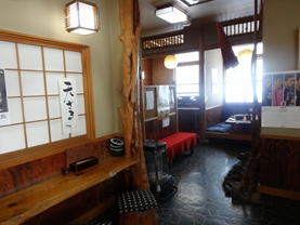 店構えは白塗りの壁にお城をイメージできるような瓦屋根と大きな入口で、入る前から気持ちが躍るお店です。中に入ると、落ち着いたメロディーが流れていて、安らげる店内となっており、一人でも家族連れでもゆっくりお食事を楽しめる店内です。メニューは、冷たいそば、うどん、温かいそば、うどん、ご飯ものとしては、天重、かつ丼といった丼ものを一通り揃えております。お店お勧めの逸品は、今の季節だと、野菜天もりそばが一番人気、これからの夏の季節は冷汁うどんが人気のあるメニューであるとの事、また、冬の季節はカレーうどんの人気があり、リピーターも多いとの事です。お客様は地元のお客様が中心ですが、休みの日には近隣市外の方が来る場合も多いということです。社長曰く「今まで宣伝等は一切行わず、口コミのお客様ばかりです。そのため根強いリピーターが多く、現在まで営業しております。これからも真面目に営業していきたいと思います」ということでした。