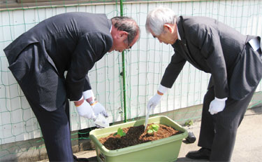 行田商工会議所工業部会では、管内企業の敷地内に、グリーンカーテン設置を行い、ゴーヤの苗を植え、緑化推進活動を企業間で推進しております。緑を増やすことにより地球温暖化防止など環境保全活動を拡げることを目的としており、日差しを遮る効果により、エアコン等の使用頻度が減り、節電効果も期待でき、最近の電力需要を抑えることにも効果的です。